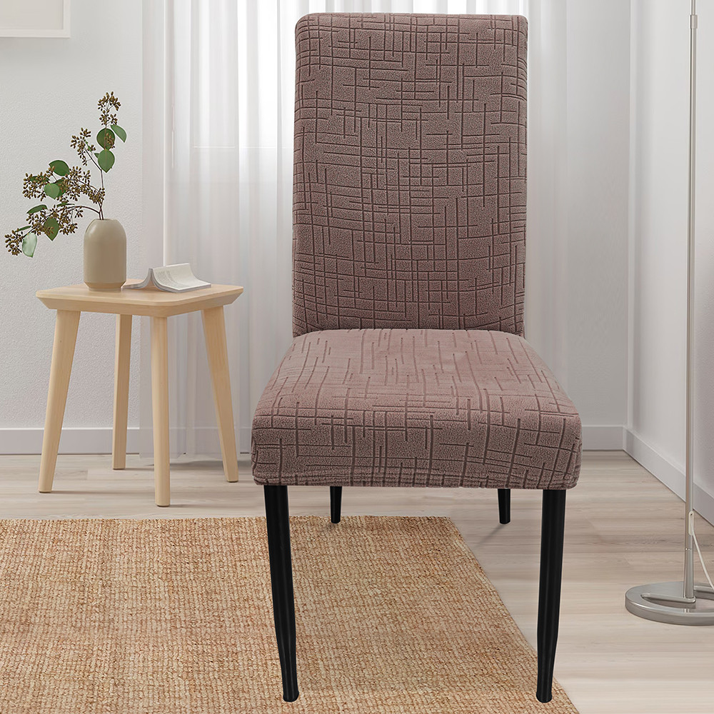 Універсальні чохли для стільців з еластичного жакарду зі стрейчем підходять для стільців із висотою спинки від 45 до 60 см і шириною сидіння від 35 до 42 см.